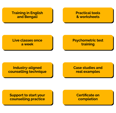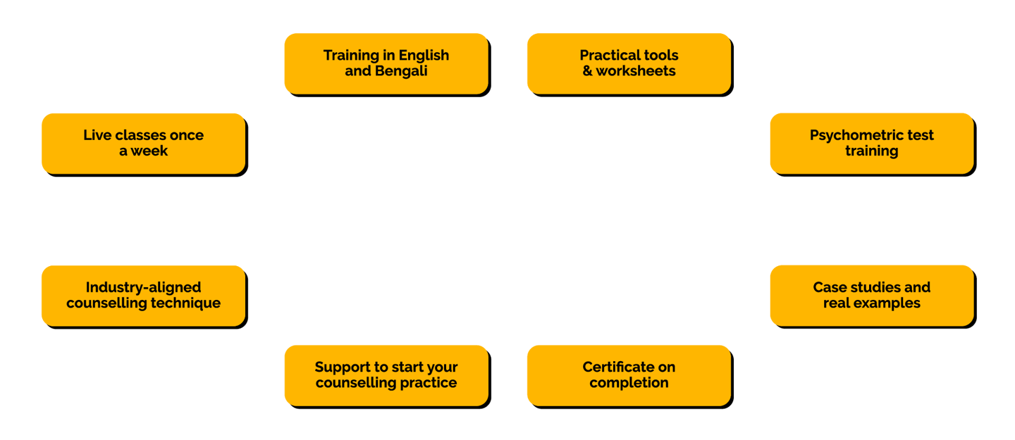 Poulami Sarker is a Parenting Coach and Career Strategist who has guided thousands of students, parents and teachers across India. She has trained counsellors, worked with schools, and led multiple programs on emotional intelligence, career planning and psychometric assessments. Her goal is to help you build confidence and start a meaningful career in counselling.